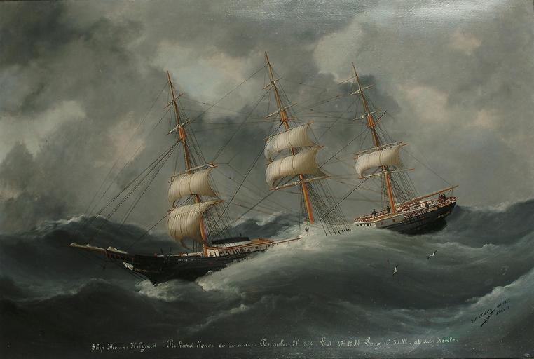 Keywords: Édouard Adam - The ship Thomas Hilyard in a gale (1885).jpg Édouard Adam 1847-1929 date 1885 oil canvas cm 61 91 accession number object history credit line exhibition history Ed Adam 1885 / Havre ~ lower right signature / date Ship Thomas Hilyard Richard Jones Commander December 21 1884 Lat 47 20 N Long 16' 30W at day break ~ lower center text probably The full rigged ship žThomas Hilyard was build 1874 at Saint John New Brunswick Canada by Hilyard Brothers The ship named perhaps after their father Thomas Hilyard Thomas Hilyard 1810-1873 was a shipbuilder and lumberman from St John New Brunswick <ref>http //www mun ca/mha/holdings/findingaids/maritime php Maritime History Archive</ref><ref>http //www collectionscanada gc ca/databases/ship-registration/001093-110 01-e php interval 20 q1 th q2 q3 q4 q5 q6 sk 901 Ship Registration Index</ref><small> reflist </small> http //www bonhams com/auctions/13565/lot/186/ Bonhams London 2006 04 11 lot 186 PD-old-auto-1923 1926 DEFAULTSORT Adam Edouard; Thomas Hilyard 1885 Édouard Adam 19th-century sailing ships in paintings Thomas Hilyard ship 1874 Paintings not categorised by year Images from Bonhams