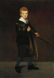 | Keywords: Édouard Manet Boy with a Sword.jpg Artwork creator Édouard Manet 1861 Oil on canvas cm 131 1 93 3 Institution Metropolitan Museum of Art Online Collection http //www metmuseum org/Collections/search-the-collections/436948 page accession number object history credit line user Rlbberlin model Léon Koelin-Leenhoff nine yers old son of Suzanne Manet own PD-old-100 Paintings by Édouard Manet in the Metropolitan Museum of Art Portrait paintings by Édouard Manet Black clothing in art male | ||||