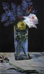 | Keywords: Édouard Manet - Roses, Tulips et Lilas dans un vase de christal.jpg Artwork creator Édouard Manet c 1881 Oil on canvas 54 x 34 cm Private collection unknown accession number object history credit line user Rlbberlin RW I No 381 own PD-old-100 Still life paintings by Édouard Manet 1881 Still life paintings of roses Manet 19th-century still life paintings of flowers in glass vases 1880s paintings from France 1880s paintings in private collections 1880s still-life paintings Category 19th-century still life paintings of flowers |