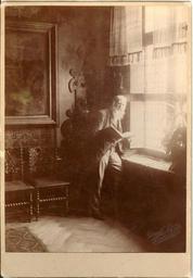 | Keywords: Eduard von Gebhardt, 003675.jpg et <table> <tr> <td> Muuseumikogu </td><td> Fotokogu</td></tr> </table> <table> <tr> <td> Olemus </td><td> foto</td></tr> <tr> <td> Originaal </td><td> originaal</td></tr> <tr> <td> Kollektsioon </td><td> Järvamaa Muinasasjade Alalhoidmise Selts</td></tr> <tr> <td> Säilivus </td><td> hea</td></tr> <tr> <td> Eraldatavad osad </td><td> Tehnika must-valge foto Materjal fotopaber Värvus pruun Mõõdud foto formaat 1 18 x 24 cm</td></tr> </table> <table> <tr> <td> tempel/ etikett/ märk </td><td> Const Luck Düsseldorf </td><td> </td></tr> <tr> <td> füüsiline kirjeldus </td><td> pruuni koloriidiga foto kleebitud papist alusele </td><td> </td></tr> <tr> <td> sisu kirjeldus </td><td> Fotoportree Järva-Jaanist pärit maalikunstnik Eduard von Gebhardt 19 saj lõpus Seisab akna juures raamat käes toetub vastu seina Seljas ülikond habemega Fotol jäänud ka osa toa sisustust - toalill seinamaal toolid </td><td> </td></tr> </table> Institution Järvamaa Museum accession number PM F 36 http //www muis ee/portaal/museaalview/245203 Järvamaa Muuseum PM F 36 PD-old Images from the Järvamaa Museum Eduard von Gebhardt |