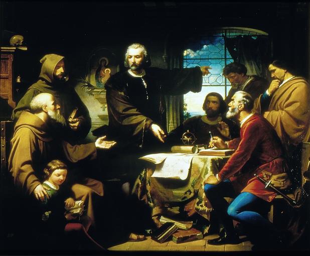 Keywords: Eduardo Cano.jpg Esta obra representa el momento en el que Cristóbal Colón intentó persuadir a los monjes del monasterio de La Rábida para que aprobaran su proyectado viaje a las Indias según consta en el Catálogo de la Exposición Nacional de 1856 donde este lienzo fue premiado con la primera medalla 1856 oil canvas Size cm 260 230 Institution Museo del Prado Depositado en el Institution Palacio del Senado de España http //www senado es/web/conocersenado/arteypatrimonio/obrapictorica/fondohistorico/detalle/index html id SENPRE_013987https //www museodelprado es/coleccion/obra-de-arte/cristobal-colon-en-el-convento-de-la-rabida/c8eb22b3-7f89-4100-9cd3-0102c4943856 accession number P05726 http //www senado es/web/conocersenado/arteypatrimonio/obrapictorica/fondohistorico/detalle/index html id SENPRE_013987 PD-old-100 Paintings of Christopher Columbus Monasterio de La Rábida Paintings by Eduardo Cano de la Peña in the Prado Museum 19th-century paintings in the Palace of Senate of Spain 1856 paintings in Spain Spain in history paintings 1850s oil on canvas paintings in Spain |