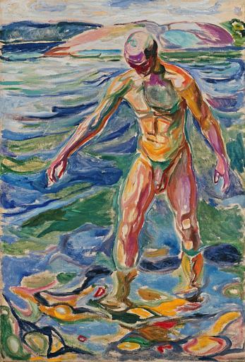 | Keywords: Edvard Munch - Bathing Man (1918) NG.M.01699.jpg Artwork Creator Edvard Munch en Bathing Man <br /> 1918 oil canvas cm 160 110 The National Museum of Art Architecture and Design accession number NG M 01699 object history Donated by the artist in 1927 credit line http //samling nasjonalmuseet no/no/object/NG M 01699 Nasjonalmuseet / Lathion Jacques PD-Art PD-old-auto-1923 1944 NO 1910s paintings by Edvard Munch 1918 paintings from Norway 1918 paintings in Norway Paintings by Edvard Munch in the Nasjonalgalleriet Paintings of nude standing males Paintings of nude males in nature |