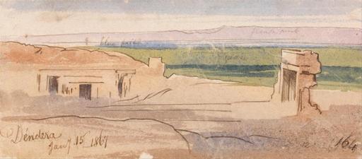 | Keywords: Edward Lear - Dendera - Google Art Project (2419379).jpg inscribed in brown ink lower left Dendera Jany 15 1867 ; in brown ink lower right 12 164 ; Verso in graphite upper left 139 Not on View Watercolor with pen in brown ink over graphite on medium slightly textured wove paper mounted on moderately thick moderately textured cream wove paper sky sand temple ruins landscape special url_id ZgF7nse8kQzITw PD-old-100-1923 1888 Egypt by Edward Lear Dendera Google Art Project works by Edward Lear |