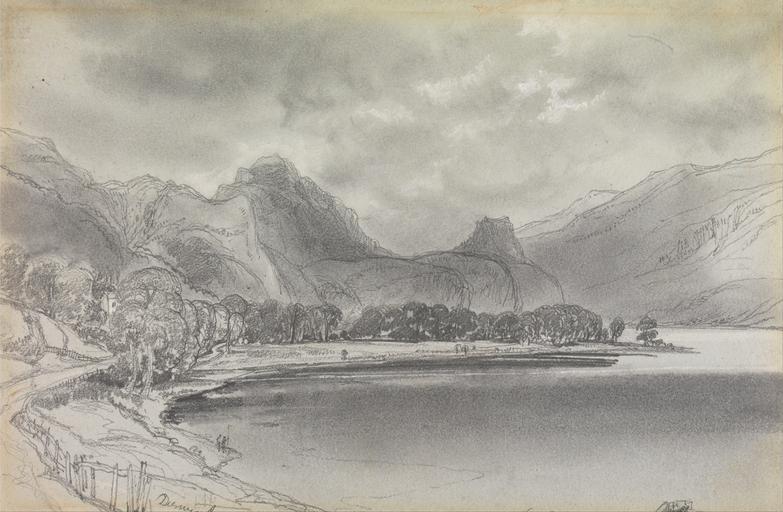 | Keywords: Edward Lear - Derwentwater - Google Art Project.jpg Inscribed in graphite lower left Derwentwater ; Verso in graphite center 4 Not on View Graphite with stumping and gouache on moderately thick moderately textured gray-green wove paper sky figures lake hills shore landform trees fence road road landscape special url_id EwEO667-td-h8g PD-old-100-1923 1888 Drawings by Edward Lear Google Art Project works by Edward Lear | ||||