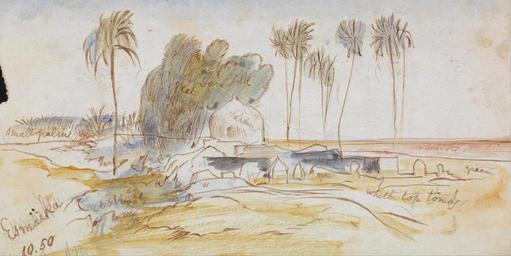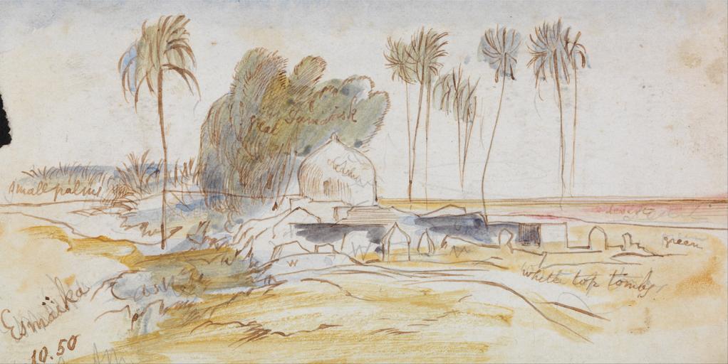 | Keywords: Edward Lear - Esmaika - Google Art Project.jpg inscribed in brown ink lower left Esmaika 10 50 ; Verso in graphite center 169 ; in brown ink center up next above lowest left Not on View Watercolor with pen in brown ink over graphite on medium slightly textured cream wove paper sky palm trees sand dome hills trees buildings landscape special url_id XgHtUG5jVPuCzA PD-old-100-1923 1888 Watercolor paintings by Edward Lear Landscape paintings by Edward Lear Google Art Project works by Edward Lear |