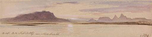 | Keywords: Edward Lear - Near Abu Simbel - Google Art Project.jpg inscribed in brown ink lower left 6 45 AM Febr 3 1867 near Aboo Simbl ; in brown ink lower right 334 ; Verson in graphite upper right 208 Not on View Watercolor with pen in brown ink and gouache over graphite on moderately thick moderately textured cream wove paper mounted on thick moderately textured cream wove paper sky sunrise water river hills landscape special url_id kAEDXP1YQK9MRA PD-old-100-1923 1888 Egypt by Edward Lear Nile in art Google Art Project works by Edward Lear |