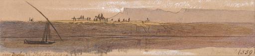 | Keywords: Edward Lear - Near Dishna - Google Art Project.jpg inscribed in brown ink lower left near Dishne Feby 27 5 20PM ; in brown ink lower right 559 Not on View Watercolor with brown ink and white gouache over graphite on thick moderately textured brown wove paper sky camels mammals river hill figures representations landscape marine art boat special url_id BwHQCd-FRr3Bqw PD-old-100-1923 1888 Egypt by Edward Lear Google Art Project works by Edward Lear Egyptian feluccas in art | ||||