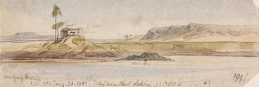 | Keywords: Edward Lear - Near Garf Hossayn, 3-40 pm, 31 January 1867 (299) - Google Art Project.jpg inscribed with pen in brown ink lower left near Garf Hosayn 3 40 PM Janr 31 1867 sky seen thru Sakkia 1 300 is B 299 Not on View Watercolor with pen in brown ink over graphite on medium slightly textured wove paper mounted on moderately thick cream wove paper sky palm trees water ruins river landscape desert special url_id RQEJ0KyhFMCmsQ PD-old-100-1923 1888 Egypt by Edward Lear Google Art Project works by Edward Lear |