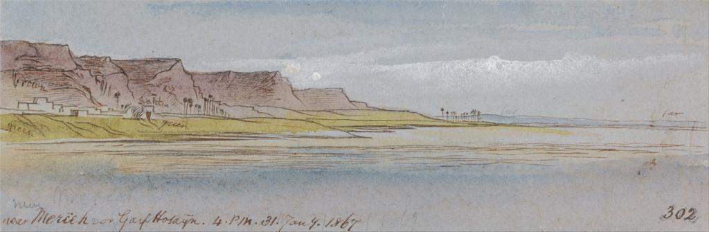 | Keywords: Edward Lear - Near Mereeh or Garf Hossayn, 4-00 pm, 31 January 1867 (302) - Google Art Project.jpg inscribed in pen with brown ink lower left near Merieh or Garf Hosayn 4 PM 31 Jan 4 1867 ; in brown ink lower right 302 Not on View Watercolor with pen in brown ink and gouache over graphite on moderately thick moderately textured gray wove paper sky palm trees water monuments ruins river riverbank structures single built works landscape special url_id 5wGGh0VYWxBWBA PD-old-100-1923 1888 Egypt by Edward Lear Google Art Project works by Edward Lear |
