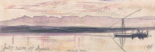| Keywords: Edward Lear - Negadeh - Google Art Project.jpg inscribed in black ink lower left Jany 17 5 45 PM 1867 Negadeh; in black ink lowr right 193 ; Verso in graphite center 8 up \ Lowest right ; in graphite upper right 147 Not on View Watercolor with pen in black ink and cochineal over graphite on thick slightly textured beige wove paper sky water river riverbank landscape marine art boat special url_id JgH-ih_qej1niQ PD-old-100-1923 1888 Egypt by Edward Lear Google Art Project works by Edward Lear Egyptian feluccas in art |