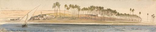 | Keywords: Edward Lear - Sharaone - Google Art Project.jpg inscribed in brown ink lower left Sharaone noon 3 Jany 1867 ; in brown ink lower center Shadows of Palms Stems on uneven mounds Its my light off ; in brown ink lower right 45 ; Verso in graphite center right 67 Not on View Watercolor with pen in brown ink over graphite on medium slightly textured wove paper mounted on moderately thick slightly textured cream wove paper palm trees sand water river sail landscape boat special url_id IgE27ZP5fjNgLg PD-old-100-1923 1888 Egypt by Edward Lear Google Art Project works by Edward Lear |