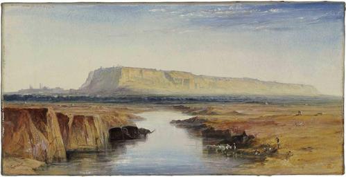 | Keywords: Edward Lear - View of Gwalior, India.jpg Artwork Creator Edward Lear View of Gwalior India 1840 oil on canvas cm 23 5 46 3 object history Provenance Probably Hugh Grosvenor 1st Duke of Westminister Grosvenor House London <br/>with Gooden Fox Ltd where acquired by Christian B Peper 1959 credit line signed in monogram 'EL' lower right and inscribed 'Gwalior' lower left Christies online 5529505 Other versions PD-old-100 Landscape paintings by Edward Lear Landscape paintings of India 1840 paintings 1840s landscape paintings |