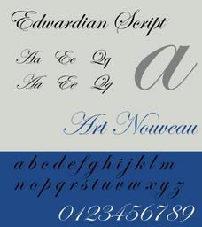 Keywords: Edwardian Script.svg en Typeface specimen of Edwardian Script own Inductiveload 2009-11-06 SVG typeface specimen samples
