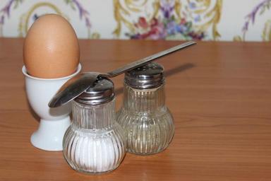 Keywords: egg breakfast egg spoon salt pepper animal food hen's egg