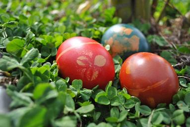 Keywords: egg easter egg easter spring march plant close sun eggs color color blue pattern green colorful yellow ornament light surface white red klee meadow