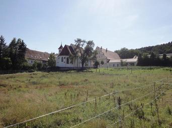 | Keywords: Eggelhof Nordost.JPG en Eggelhof in Langweid de Das Ensemble Eggelhof in Langweid umfasst den schon im 12 Jahrhundert genannten später im Besitz des Augsburger Domkapitels befindlichen Gutshof Er war bis zum 16 Jahrhundert Sitz eines domkapitelischen Amtes und befindet sich am Rande des Schmuttertales in eindrucksvoller Lage; die Baugruppe besitzt eine große Fernwirkung Der nach Osten geöffnete dreiseitige Hof besteht aus dem stattlichen zweigeschossigen um 1730 entstandenen und durch einen lebhaft geschweiften Spätbarockgiebel ausgezeichneten Gutshaus aus einem weiteren stattlichen Wohngebäude mit Satteldach und einem Wirtschaftsgebäude Die große Hofkapelle zur Schmerzhaften Muttergottes östlich vor dem Gutshaus gelegen und das Ensemble beherrschend erhebt sich über den Resten romanischer und vielleicht auch eines römischen Gebäudes; ihrem spätgotischen Chor fügte Joseph Meitinger 1765 ein barockes Langhaus an Weiterführende Informationen unter http //www der-eggelhof de www der-eggelhof de own Jkü 2012-07-23 48 495301 10 820165 E-7-72-171-1 Cultural heritage monuments in Langweid am Lech Gut Eggelhof Cc-zero |