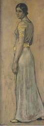 | Keywords: Egger-Lienz - Einzug König Etzels in Wien - Hofdame.jpeg Einzug König Etzels in Wien - Hofdame oil canvas 113 x 43 cm Lienz Schloss Bruck repro from artbook ~ 1909 Creator Albin Egger-Lienz PD-old Other versions Portraits by Albin Egger-Lienz |