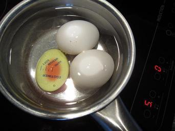 Keywords: Eggtimer.jpg en A colour-changing egg timer for boiling eggs own Nimloth250 2011-04-25 Cc-zero Kitchen utensils Pans Timers