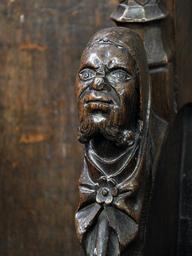 | Keywords: Eglise Orbais-l'Abbaye 13 02 2011 stalles 08.jpg fr Stalles de l'église Saint-Pierre-et-Saint-Paul à Orbais l'Abbaye sculptées par Jean Huilier et offertes en 1520 par Louis de Bourbon abbé du couvent détail d'un accoudoir own Vassil 2011-02-13 Cc-zero Choir stalls of abbatiale Saint-Pierre d'Orbais-l'Abbaye Faces of men in art |