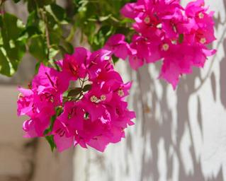 Keywords: egypt bougainvillea flowers red red purple white wall green leaf vivid white wall