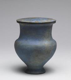 | Keywords: Egyptian - Amphora with Cover - Walters 471 - View A.jpg A rare and fine example of so-called Egyptian blue ceramic ware this lovely vase has a form similar to contemporary vessels of alabaster between 1380 1300 BC New Kingdom Egyptian blue cm 12 6 10 2 h x diam ; top of vase cm 9 4 diam ; lid cm 0 8 9 5 h x diam accession number 47 1 5577 Dikran Kelekian Paris and New York Henry Walters city Baltimore Walters Art Museum Henry Walters Acquired by Henry Walters 1914 Egypt's Golden Age The Art of Living in the New Kingdom 1558-1085 B C Museum of Fine Arts Boston Boston; Houston Museum of Natural Science Houston; The Walters Art Gallery Baltimore 1982-1983 place of origin Florence Italy Walters Art Museum license Ancient Egyptian pottery in the Walters Art Museum Media contributed by the Walters Art Museum needs category review |