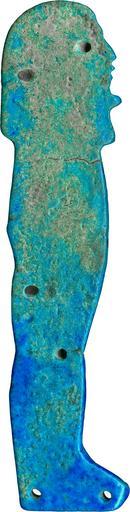 | Keywords: Egyptian - Amuletic Figure of Imsety, Son of Horus - Walters 481640 - Reverse.jpg This faience amulet represents Imsety the human-headed son of Horus There are four sons of Horus and this amulet is part of a set of four Walters 48 1638-1641 The sons of Horus protected the vital organs of the body after mummification The figure faces proper right It is composed of blue glazed faience with the details picked out in purple/black manganese The figure wears a three row broad collar a tripartite wig and a divine beard There are five diagonal stripes of manganese across the mummiform body representing the mummy wrappings or braces Numerous funerary amulets were usually placed among the many layers of linen strips used to wrap mummies Specific amulets along with their required position on the body are listed in funerary texts such as The Book of the Dead Amulets were sometimes sewn directly onto the wrappings or could be incorporated into a bead net shroud covering the mummy These amulets have been modeled with a flat underside and are pierced by tiny holes around the edges for attachment ca 750 650 BC Third Intermediate Egyptian faience with blue and black glaze cm 9 2 2 2 0 7 accession number 48 1640 17438 Henry Walters Baltimore date and mode of acquisition unknown Walters Art Museum Henry Walters Acquired by Henry Walters Jewelry - Ancient to Modern The Walters Art Gallery Baltimore 1979-1980 Objects of Adornment Five Thousand Years of Jewelry from the Walters Art Gallery Baltimore Cooper-Hewitt National Design Museum New York; Chrysler Museum of Art Norfolk; Carnegie Museum of Art Pittsburgh; San Antonio Museum of Art San Antonio; Philbrook Museum of Art Tulsa; Honolulu Academy of Arts Honolulu; New Orleans Museum of Art New Orleans; Milwaukee Art Museum Milwaukee; Minneapolis Institute of Arts Minneapolis; Toledo Museum of Art Toledo; The John and Mable Ringling Museum of Art Sarasota 1984-1987 Jewelry from the Walters Art Museum and the Zucker Family Collection The Walters Art Gallery Baltimore 1987 Faience The Colors of the Heavens The Walters Art Museum Baltimore; The Walters Art Museum Baltimore 2003-2004 place of origin Egypt Walters Art Museum license Ancient Egyptian amulets in the Walters Art Museum Imset Ancient Egyptian faience in the Walters Art Museum Media contributed by the Walters Art Museum needs category review |