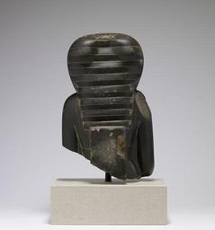 | Keywords: Egyptian - Bust of a Queen Wearing Royal Headdress - Walters 22405 - Back.jpg This was once part of a statue showing a seated queen wearing the vulture headdress associated with queens as well as goddesses such as Isis and Hathor The 30th Dynasty saw the revival of Middle Kingdom motifs such as the wig with large curls and the large ears Late Period details include the fleshy face the slight smile and the long cosmetic lines of the eyes and brows ca 360 330 BC Late Period graywacke cm 45 21 13 8 accession number 22 405 13345 Dikran Kelekian New York and Paris Henry Walters city Baltimore Walters Art Museum Henry Walters Acquired by Henry Walters 1925 Mistress of House Mistress of Heaven Women in Ancient Egypt Brooklyn Museum Brooklyn; Cincinnati Art Museum Cincinnati 1996-1997 place of origin Upper Egypt Walters Art Museum license Ancient Egyptian statues in the Walters Art Museum Media contributed by the Walters Art Museum needs category review Ancient Egyptian art made from greywacke |