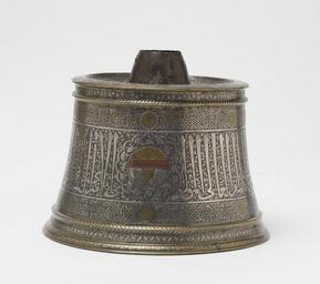 | Keywords: Egyptian - Candlestick Base - Walters 54459 - View K.jpg Throughout Islamic history sultans princes and court officials have been active art patrons This impressive candlestick base was commissioned by Zayn al-Din Kitbugha who served as saqi or cupbearer at the court of the Mamluk Dynasty in Egypt before ascending the throne in 1294 The large inscription in thuluth script around the candlestick's body is punctuated by roundels featuring a stemmed cup Kitbugha's blazon or heraldic shield Calligraphy is also a major decorative element In addition to the large thuluth inscription this piece includes different sizes and styles of Arabic script Despite its elaborate design Kitbugha had the candlestick made for use in his household storeroom or pantry The candlestick's neck and socket- today in the Museum of Islamic Art Cairo- already had been removed when Mr Walters added the piece to his growing collection of Islamic art ca 1290 Mamluk; Bahri brass with silver gold and copper inlays cm 26 5 32 5 accession number 54 459 15804 Dikran Kelekian New York and Paris Henry Walters city Baltimore Walters Art Museum Henry Walters Acquired by Henry Walters 1925 Transcription Inscribed base and neck Zayn al-Din Kitbugha; Translation Inscribed base in thuluth script This is one of the things made for the servery of the lofty authority the lordly the great amir the conqueror the holy warrior the just al-Zayni Zayn al-Din Kitbugha al-Mansuri al-Ashrafi of the households of the sultans Qalawun and Khalil The Arts of Islam Hayward Gallery London 1976 Renaissance of Islam Art of the Mamluks Smithsonian National Museum of Natural History Washington; Minneapolis Institute of Arts Minneapolis; The Metropolitan Museum of Art New York; Cincinnati Art Museum Cincinnati; The Detroit Institute of Arts Detroit; Crocker Art Museum Sacramento; San Diego Museum Of Art San Diego; Phoenix Art Museum Phoenix; Wadsworth Atheneum Museum of Art Hartford 1981-1983 Highlights from the Collection The Walters Art Gallery Baltimore 1998-2001 place of origin Egypt Walters Art Museum license Islamic metalwork in the Walters Art Museum Media contributed by the Walters Art Museum needs category review Metalwork of Egypt Al-Adil Kitbugha |