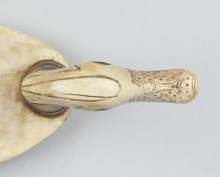 | Keywords: Egyptian - Duck Cosmetic Box - Walters 71519 - Detail.jpg The wings of this charming cosmetic container pivot outward revealing a storage compartment The eyes were once inlaid The pintail duck is one of Egypt's most common species of waterfowl and was a popular decorative motif between 1550 1196 BC New Kingdom hippopotamus ivory elephant ivory bone cm 7 6 6 20 5 accession number 71 519 13782 Reverend Wiliam MacGregor Collection Sale Sotheby's London 1922 no 703 Henry Walters city Baltimore from unknown dealer in Paris Walters Art Museum Henry Walters Acquired by Henry Walters 1925 place of origin Japan Walters Art Museum license Ancient Egyptian art in the Walters Art Museum Works of the Egyptian New Kingdom Birds in Ancient Egypt Ancient Egyptian kohl spoons |