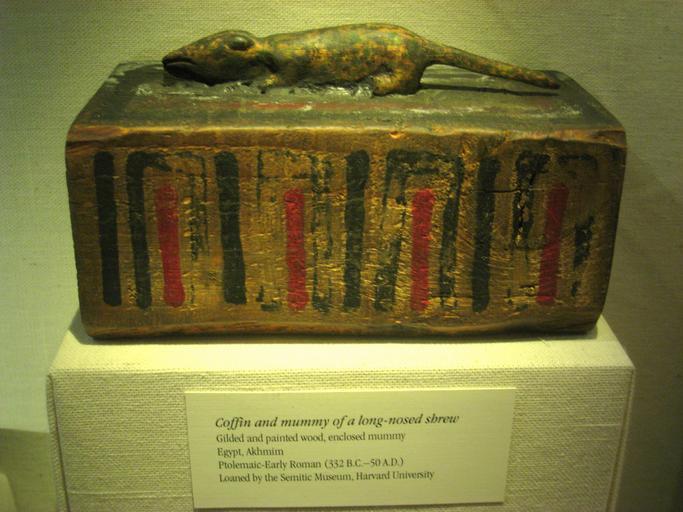 Keywords: Egyptian exhibit in Buffalo Museum of Science - IMG 3789.JPG Coffin and mummy of a long-nosed shrew Egyptian exhibit in the Buffalo Museum of Science Buffalo New York USA own 2010-01-20 Daderot Public domain Ancient Egyptian sarcophagi of animals Egyptian mummies of animals Egyptian exhibit in the Buffalo Museum of Science |