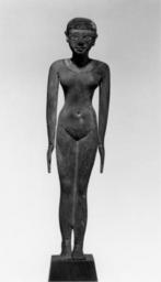 | Keywords: Egyptian - Female Tomb Figure - Walters 22253.jpg This woman is shown nude but with collar bracelets and anklets Women were normally depicted in a restful pose with feet together and arms hanging down beside the body-not in the more active stance of men with the left foot forward The woman has short hair painted black in rows of rectangles She wears a painted necklace braclets and anklets Her feet have been repaired and she has pins under her heels and set into modern base ca 2270 BC Old Kingdom wood with black yellow and white paint cm 28 accession number 22 253 33509 Dikran Kelekian New York and Paris date and mode of acquistion unknown Henry Walters Baltimore 1917 mode of acquistion unknown Walters Art Museum Henry Walters Acquired by Henry Walters 1917 Carved for Immortality The Walters Art Museum Baltimore 2004-2005 place of origin Egypt Walters Art Museum license Ancient Egyptian statues in the Walters Art Museum Statues of the Egyptian Old Kingdom |