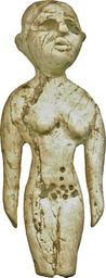 | Keywords: Egyptian - Female - Walters 71535.jpg A female figure stands stiffly the shaved head slightly raised The shoulders droop and the hands dangle the fingers indicated by simple grooves Large oval depressions indicate the eyes; the top left eyelid is shown She has a ledgelike left ear full breasts and slender hips with well-shaped buttocks Incised holes mark the public triangle and navel There are many old breaks and repairs and a light area in line over the left arm and throax The lower legs have been broken off mid 4th millennium BC Predynastic Egypt hippopotamus ivory cm 4 8 2 49 0 8 accession number 71 535 15246 MacGregor Collection cat 1922 p 93 no 712 pl XXIV Dikran Kelekian New York and Paris date and mode of acquisition unknown Henry Walters city Baltimore Walters Art Museum Henry Walters Acquired by Henry Walters 1923 place of origin Egypt Walters Art Museum license Egyptian predynastic art in the Walters Art Museum |