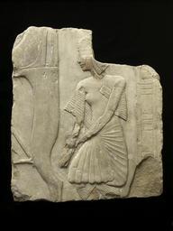 | Keywords: Egyptian - Fragment of a Tomb Relief - Walters 22128.jpg Deriving from one of the most beautifully sculpted New Kingdom tombs this small relief exemplifies the best artwork of the era of Tutankhamun 1336-1327 BC A scribe of the general and later king Horemheb is shown standing behind a chair which is represented on a scale far larger than he Though the scribe's social status is obviously below that of the tomb's owner his curling echeloned wig and his upturned nose are characteristic features favored in the period immediately following Akhenaten's death in 1336 as is the somewhat slight body which is punctuated by a spreading belly and hips The delicately carved and clearly defined pleating of the scribe's garments reveals that the body type is a deliberate fashion and not artistic ineptitude The bureaucrat grasps his far wrist with his near hand in a gesture of deference to the unseen tomb owner seated before him Tucked under his near armpit is the man's scribal palette which identifies his profession despite the absence of any inscription The vertical bar behind the official indicates the end of this composition ca 1325 BC limestone traces of paint cm 41 9 36 7 accession number 22 128 4908 Dikran Kelekian New York or Paris Henry Walters city Baltimore Walters Art Museum Henry Walters Acquired by Henry Walters 1925 place of origin Saqqara Egypt Walters Art Museum license Ancient Egyptian reliefs in the Walters Art Museum Reliefs of the 18th dynasty of Egypt Ancient Egyptian art from Saqqara Media contributed by the Walters Art Museum needs category review |