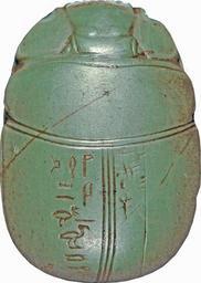 | Keywords: Egyptian - Heart Scarab of Bak-en-Djehuti - Walters 42380 - Back.jpg The ancient Egyptians believed that the dung beetle the Scarabaeus sacer was one of the manifestations of the sun god Representations of these beetles were used as amulets and for ritual or administrative purposes This scarab is a so-called Heart scarab which was used for the deceased The linearly incised bottom inscription contains spell 30 B of the Book of the Dead The left reading text is displayed in ten lines separated by nine very straight text-divider and framed by an oval line The hieroglyphs are less detailed and slightly irregular The layout is well organized and the signs evenly spaced The back of the scarab is very high and the highest point at the partition between pronotum dorsal plate of the prothorax and elytron wing cases Both parts have incised borderlines a slightly curved double partition lines and a triple division line between the wing cases The rectangular head is flanked by quarter-spherical two-stage eyes with lid markings The side plates and the clypeus front plate are trapezoidal On the left wing case is an inscription with name and title of the owner the priest of Amun Bak-en-Djehuti and on the right wing case a crossed lines pattern and a formula wishing him life The style of the inscription on the back differs from that on the bottom and it is most likely that the text on the back with the individualization was added later by another hand The crossed lines on the right wing case are less deeply incised and might have been added later only the ankh-sign meaning life looks similar to the inscription on the left wing case The extremities have natural form and vertical and diagonal hatch lines for the tibial teeth and the pilosity hair The low oval base is slightly asymmetrical and has a smaller head The scarab was produced to be placed in the wrappings of a mummy It was individualized by his name of the deceased Bak-en-Djehuti Such funerary amulet should cause the renewal of the deceased and support him in the Weighing of the Heart procedure in the Judgement hall of the underworld between 1186 718 BC late New Kingdom-Third Intermediate grey-green greywacke cm 1 8 2 7 3 8 accession number 42 380 5996 Dikran Kelekian Paris and New York date and mode of acquisition unknown Henry Walters city Baltimore Walters Art Museum Henry Walters Acquired by Henry Walters 1911 Translation On the back of the scarab Priest of Amun Bak-en-Djehuti who is justified / May he life place of origin Egypt Walters Art Museum license Ancient Egyptian scarabs in the Walters Art Museum Heart scarabs Launderer's club hieroglyph Red crown n hieroglyph Amun hieroglyphs Stork hieroglyph Ibis hieroglyph True of Voice hieroglyphs Scarabs with Wish Formula Ancient Egyptian art made from greywacke Priest of Amun |