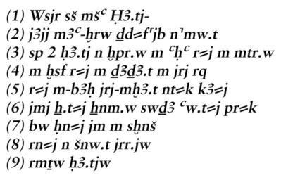 | Keywords: Egyptian - Heart Scarab of Bak-en-Djehuti - Walters 42380 - Transcription.jpg The ancient Egyptians believed that the dung beetle the Scarabaeus sacer was one of the manifestations of the sun god Representations of these beetles were used as amulets and for ritual or administrative purposes This scarab is a so-called Heart scarab which was used for the deceased The linearly incised bottom inscription contains spell 30 B of the Book of the Dead The left reading text is displayed in ten lines separated by nine very straight text-divider and framed by an oval line The hieroglyphs are less detailed and slightly irregular The layout is well organized and the signs evenly spaced The back of the scarab is very high and the highest point at the partition between pronotum dorsal plate of the prothorax and elytron wing cases Both parts have incised borderlines a slightly curved double partition lines and a triple division line between the wing cases The rectangular head is flanked by quarter-spherical two-stage eyes with lid markings The side plates and the clypeus front plate are trapezoidal On the left wing case is an inscription with name and title of the owner the priest of Amun Bak-en-Djehuti and on the right wing case a crossed lines pattern and a formula wishing him life The style of the inscription on the back differs from that on the bottom and it is most likely that the text on the back with the individualization was added later by another hand The crossed lines on the right wing case are less deeply incised and might have been added later only the ankh-sign meaning life looks similar to the inscription on the left wing case The extremities have natural form and vertical and diagonal hatch lines for the tibial teeth and the pilosity hair The low oval base is slightly asymmetrical and has a smaller head The scarab was produced to be placed in the wrappings of a mummy It was individualized by his name of the deceased Bak-en-Djehuti Such funerary amulet should cause the renewal of the deceased and support him in the Weighing of the Heart procedure in the Judgement hall of the underworld between 1186 718 BC late New Kingdom-Third Intermediate grey-green greywacke cm 1 8 2 7 3 8 accession number 42 380 5996 Dikran Kelekian Paris and New York date and mode of acquisition unknown Henry Walters city Baltimore Walters Art Museum Henry Walters Acquired by Henry Walters 1911 Translation On the back of the scarab Priest of Amun Bak-en-Djehuti who is justified / May he life place of origin Egypt Walters Art Museum license 2D Ancient Egyptian scarabs in the Walters Art Museum Hieroglyphs on scarabs Heart scarabs Media contributed by the Walters Art Museum needs category review Scarabs with Wish Formula |
