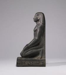 | Keywords: Egyptian - Kneeling Figure of Hor-wedja - Walters 2279 - Left.jpg Hor-wedja was the son of Vizier Sasobek the highest-ranking official during the reign of King Psammetichus I Hor-wedja's son Meryptah commissioned this temple sculpture for him Hor-wedja kneels presenting only himself to his god He abases himself in the deity's presence but keeps his head erect expressing respect and confidence A hieroglyphic inscription gives the lineage and titles of Hor-wedja running in a horizontal band around the base in a line across the top of the base and in a single vertical column on the back pillar Hor-wedja kneels upon a rectangular base and his toes are splayed out in an unnatural way He wears a belted shendyt and a simple bag wig The wide width of the wig is common for the Saite Period The orientation of the wig onto the top of the back pillar is echoed in other sculptures from the 26th Dynasty through the reign of Apries As is characteristic for the Saite Period his image is quite idealized The body appears strong but the definition of the musculature is subtle A strong median line is visible His hands are placed flat upon his thighs and appear unusually plump His facial features are also typical for the Saite Period long almond-shaped eyes with straight brows above long smooth cheeks a long straight nose and a softly smiling mouth The statue is well preserved and the polish is only marred by a few minor nicks ca 640 620 BC Late Period graywacke cm 37 5 11 3 19 8 accession number 22 79 8349 Cairo Museum Cairo CG 669 Henry Walters Baltimore date and mode of acquisition unknown Walters Art Museum Henry Walters Acquired by Henry Walters Translation His son who makes his name live the prophet-priest the chief overseer of the estate Mery-ptah; Translation An offering which he gives to Ptah-Sokar-Osiris that he may give funerary offerings of bread beer oxen and fowl to the prophet-priest and leader of the houses Hor-wedja; Translation The revered before Ptah-Sokar the prophet-priest of Anubis of Ro-setaw the leader of the houses of Neith of Sais the great one of the Two Lands his beloved son the priest of Neith Hor-wedja The revered before Hathor the mistress of the Southern Sycamore the prophet-priest Hor-wedja son of a man with the same titles the prophet-priest of Ptah the governor of the capital the vizier Sa-Sobek Ägypten Griechenland Rom Abwehr und Berührung Staedtische Galerie Liebieghaus Frankfurt am Main 2005-2006 place of origin Egypt Walters Art Museum license Ancient Egyptian statues in the Walters Art Museum Media contributed by the Walters Art Museum needs category review High priest of Ra Ancient Egyptian priests Ancient Egyptian art made from greywacke |
