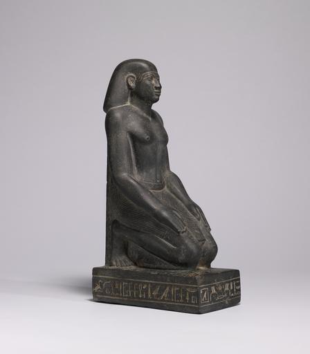 | Keywords: Egyptian - Kneeling Figure of Hor-wedja - Walters 2279 - Three Quarter Right.jpg Hor-wedja was the son of Vizier Sasobek the highest-ranking official during the reign of King Psammetichus I Hor-wedja's son Meryptah commissioned this temple sculpture for him Hor-wedja kneels presenting only himself to his god He abases himself in the deity's presence but keeps his head erect expressing respect and confidence A hieroglyphic inscription gives the lineage and titles of Hor-wedja running in a horizontal band around the base in a line across the top of the base and in a single vertical column on the back pillar Hor-wedja kneels upon a rectangular base and his toes are splayed out in an unnatural way He wears a belted shendyt and a simple bag wig The wide width of the wig is common for the Saite Period The orientation of the wig onto the top of the back pillar is echoed in other sculptures from the 26th Dynasty through the reign of Apries As is characteristic for the Saite Period his image is quite idealized The body appears strong but the definition of the musculature is subtle A strong median line is visible His hands are placed flat upon his thighs and appear unusually plump His facial features are also typical for the Saite Period long almond-shaped eyes with straight brows above long smooth cheeks a long straight nose and a softly smiling mouth The statue is well preserved and the polish is only marred by a few minor nicks ca 640 620 BC Late Period graywacke cm 37 5 11 3 19 8 accession number 22 79 8349 Cairo Museum Cairo CG 669 Henry Walters Baltimore date and mode of acquisition unknown Walters Art Museum Henry Walters Acquired by Henry Walters Translation His son who makes his name live the prophet-priest the chief overseer of the estate Mery-ptah; Translation An offering which he gives to Ptah-Sokar-Osiris that he may give funerary offerings of bread beer oxen and fowl to the prophet-priest and leader of the houses Hor-wedja; Translation The revered before Ptah-Sokar the prophet-priest of Anubis of Ro-setaw the leader of the houses of Neith of Sais the great one of the Two Lands his beloved son the priest of Neith Hor-wedja The revered before Hathor the mistress of the Southern Sycamore the prophet-priest Hor-wedja son of a man with the same titles the prophet-priest of Ptah the governor of the capital the vizier Sa-Sobek Ägypten Griechenland Rom Abwehr und Berührung Staedtische Galerie Liebieghaus Frankfurt am Main 2005-2006 place of origin Egypt Walters Art Museum license Ancient Egyptian statues in the Walters Art Museum Media contributed by the Walters Art Museum needs category review High priest of Ra Ancient Egyptian priests Ancient Egyptian art made from greywacke |