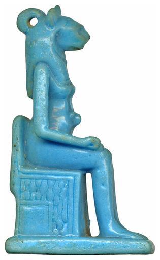 | Keywords: Egyptian - Lioness Headed Goddess - Walters 481546 - Right.jpg The lustrous blue glaze on this example of Egyptian faience a ceramic-like glazed material imitated the tones of turquoise which was imported from the Sinai Peninsula Egyptian faience was inexpensive to produce but the results were so beautiful that it was used for even very prestigious objects The lioness-headed goddess probably Wadjet is seated on a throne her left hand holding a papyrus-scepter in front of her body A loop which clarifies the function of the small statuette as a pendant is behind her back between 664 525 BC Late Period; Saite Egyptian faience with blue glaze cm 5 29 1 42 3 19 accession number 48 1546 11753 Henry Walters Baltimore 1930 mode of acquisition unknown Walters Art Museum Henry Walters Acquired by Henry Walters 1930 place of origin Egypt Walters Art Museum license Ancient Egyptian amulets in the Walters Art Museum Ancient Egyptian faience in the Walters Art Museum Media contributed by the Walters Art Museum needs category review |