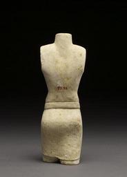 | Keywords: Egyptian - Model Torso - Walters 2232 - Back.jpg Sculpture models such as this example were used by artists in the Ptolemaic and Roman periods This model appears to be complete despite the lack of head arms and lower legs The grid lines on the legs helped to keep the proportions The statue is dressed with a shendit Such models may also have served a votive purpose in a temple setting ca 150 27 BC Greco-Roman limestone cm 17 3 6 2 4 7 accession number 22 32 12670 From Dendera Dikran Kelekian New York and Paris Henry Walters city Baltimore Walters Art Museum Henry Walters Acquired by Henry Walters 1912 place of origin Paris France Walters Art Museum license Ancient Egyptian statues in the Walters Art Museum Media contributed by the Walters Art Museum needs category review |