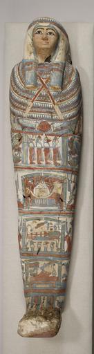 | Keywords: Egyptian - Mummy and Painted Cartonnage of an Unknown Woman - Walters 791.jpg Mummification preserved mortal remains in order to house the Ka or life force of the individual as it needed to return to the body to find sustenance The human-shaped covering called cartonnage is composed of layers of linen and plaster Its painted decoration includes the floral wreath on the wig a broad collar and a winged scarab beetle Five additional registers of decoration show the protective four sons of Horus the sacred boat of the funerary-deity Sokar a mummy of Osiris on a funerary bed a divine falcon god and a short hieroglyphic text with an offering formula See the additional media for a facial reconstruction of the mummy courtesy of Michael Brassell as well as a color reconstruction of the cartonnage ca 850 750 BC Third Intermediate mummy in cartonnage with paint cm 167 46 27 5 accession number 79 1 492 Excavated at Deir el-Bahri by the Metropolitan Museum of Art's Egyptian Expedition Winter of 1930-1931 by Ambrose Lansing Metropolitan Museum of Art New York ca 1930-1931 Walters Art Museum 1941 by exchange Museum acquisition by exchange with the Metropolitan Museum of Art 1941 Translation The king gives an offering to Osiris In Search of Ancient Treasure 40 Years of Collecting The Walters Art Gallery Baltimore 1978 Highlights from the Collection The Walters Art Gallery Baltimore 1998-2001 place of origin Deir el-Bahri present-day Western Thebes Egypt Walters Art Museum license Ancient Egyptian sarcophagi in the Walters Art Museum Ancient Egyptian art from Deir el-Bahari Sarcophagi of the Egyptian third intermediate period Media contributed by the Walters Art Museum needs category review Egyptian mummies in the Walters Art Museum |
