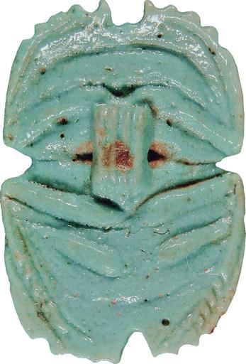 | Keywords: Egyptian - Naturalistic Scarab - Walters 42370 - Bottom.jpg Naturalistic scarabs which exhibit a beetle-formed underside instead of a flat bottom with additional motifs became popular in the late Third Intermediate and Late periods They were attached to the mummy bandages and were part of the amulet set There are two varieties of such scarabs red carnelian and blue-green faience scarabs It is likely that the blue-green scarabs focus only on the renewal aspect while the red carnelian scarabs were related to the sun rise/set aspect and gave special protection at the critical transition phase between 664 525 BC Late Period Egyptian faience with blue-green glaze cm 1 1 1 9 2 8 accession number 42 370 4005 Henry Walters Baltimore 1924 mode of acquisition unknown Walters Art Museum Henry Walters Acquired by Henry Walters 1924 Faience The Colors of the Heavens The Walters Art Museum Baltimore; The Walters Art Museum Baltimore 2003-2004 place of origin Egypt Walters Art Museum license Ancient Egyptian scarabs in the Walters Art Museum Media contributed by the Walters Art Museum needs category review |