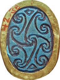 | Keywords: Egyptian - Ring Bezel - Walters 4238 - Bottom (2).jpg A scarab made of turquoise-colored glazed steatite perforated longitudinally and probably once mounted as a ring The elaborate gold frame around the bottom was made of thick sheet gold to which two strands of twisted gold wire flanking notched gold wire were added The free movement of the interlocking scroll pattern carved into the base of the scarab witness the influence of Cretan art on Egypt of the period The authenticity of this piece is questioned ca 1850 1648 BC late Middle Kingdom steatite with blue glaze gold cm 1 1 1 8 2 4 accession number 42 38 33335 Henry Walters city Baltimore Walters Art Museum Henry Walters Acquired by Henry Walters 1913 Jewelry - Ancient to Modern The Walters Art Gallery Baltimore 1979-1980 Objects of Adornment Five Thousand Years of Jewelry from the Walters Art Gallery Baltimore Cooper-Hewitt National Design Museum New York; Chrysler Museum of Art Norfolk; Carnegie Museum of Art Pittsburgh; San Antonio Museum of Art San Antonio; Philbrook Museum of Art Tulsa; Honolulu Academy of Arts Honolulu; New Orleans Museum of Art New Orleans; Milwaukee Art Museum Milwaukee; Minneapolis Institute of Arts Minneapolis; Toledo Museum of Art Toledo; The John and Mable Ringling Museum of Art Sarasota 1984-1987 Jewelry from the Walters Art Museum and the Zucker Family Collection The Walters Art Gallery Baltimore 1987 place of origin Egypt <gallery> File Egyptian - Ring Bezel - Walters 4238 - Bottom jpg </gallery> Walters Art Museum license Ancient Egyptian scarabs in the Walters Art Museum Ancient Egyptian jewellery in the Walters Art Museum |
