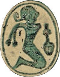 | Keywords: Egyptian - Scarab Amulet - Walters 4251 - Bottom.jpg The ancient Egyptians believed that the dung beetle the Scarabaeus sacer was one of the manifestations of the sun god Representations of these beetles were used as amulets and for ritual or administrative purposes The bottom of this scarab displays the figure of kneeling prisoner with his arms fettered behind the back He wears a headband with curled ends a collar around his neck and a short shendyt with belt; a large nfr-sign is placed in front of him The figure of the captive dominates the scene but the size and placement of the nfr-sign which counterbalances the fettered arms of the captive clarifies that he is part of a perfectly controlled situation The highest point of the back is pronotum dorsal plate of the prothorax and elytron wing cases Both parts have incised borderlines a thick curved partition line and a thick line between the wing cases The semicircular head is flanked by triangular eyes; the plates are irregularly trapezoidal and clypeus has two very small central base marks The proportions of the top are slightly unbalanced the head and clypeus slightly short and the pronotum large in comparison to the elytron The slender extremities have natural form and diagonal hatch lines on the frontlegs for the tibial teeth The oval base is somewhat asymmetrical and smaller at the head part The scarab is longitudinally pierced was originally mounted or threaded and probably served as an amulet It refers to perfect control of chaotic elements enemy and is possibly a statement of the victory over the Kerma Empire Such an amulet should protect its owner from danger It is imaginable that the soldiers who protected the southern borders or participated in military campaigns to the south used it The iconography of the prisoner makes it possible that he represents a man from Kerma the southern enemy of the Egyptians The understanding of the figure as hieroglyph for enemy rebel is also possible but it is more likely that it is a specific icon for the enemies of Kerma who are now perfect because Thutmose I had defeated them between 1504 1492 BC New Kingdom light beige steatite with green glazing cm 1 4 1 1 0 6 accession number 42 51 488 Henry Walters Baltimore date and mode of acquisition unknown Walters Art Museum Henry Walters Acquired by Henry Walters Inscription Icon of a kneeling prisoner with his arms fettered behind the back; he wears a headband with curled ends a collar around his neck and a short kilt with belt; an nfr-sign is placed in front of him place of origin Egypt Walters Art Museum license Ancient Egyptian scarabs in the Walters Art Museum Scarab amulet Prisoner hieroglyph Media contributed by the Walters Art Museum needs category review POWs in Ancient Egypt |