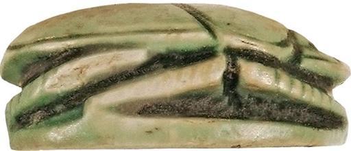 | Keywords: Egyptian - Scarab Amulet - Walters 4251 - Right.jpg The ancient Egyptians believed that the dung beetle the Scarabaeus sacer was one of the manifestations of the sun god Representations of these beetles were used as amulets and for ritual or administrative purposes The bottom of this scarab displays the figure of kneeling prisoner with his arms fettered behind the back He wears a headband with curled ends a collar around his neck and a short shendyt with belt; a large nfr-sign is placed in front of him The figure of the captive dominates the scene but the size and placement of the nfr-sign which counterbalances the fettered arms of the captive clarifies that he is part of a perfectly controlled situation The highest point of the back is pronotum dorsal plate of the prothorax and elytron wing cases Both parts have incised borderlines a thick curved partition line and a thick line between the wing cases The semicircular head is flanked by triangular eyes; the plates are irregularly trapezoidal and clypeus has two very small central base marks The proportions of the top are slightly unbalanced the head and clypeus slightly short and the pronotum large in comparison to the elytron The slender extremities have natural form and diagonal hatch lines on the frontlegs for the tibial teeth The oval base is somewhat asymmetrical and smaller at the head part The scarab is longitudinally pierced was originally mounted or threaded and probably served as an amulet It refers to perfect control of chaotic elements enemy and is possibly a statement of the victory over the Kerma Empire Such an amulet should protect its owner from danger It is imaginable that the soldiers who protected the southern borders or participated in military campaigns to the south used it The iconography of the prisoner makes it possible that he represents a man from Kerma the southern enemy of the Egyptians The understanding of the figure as hieroglyph for enemy rebel is also possible but it is more likely that it is a specific icon for the enemies of Kerma who are now perfect because Thutmose I had defeated them between 1504 1492 BC New Kingdom light beige steatite with green glazing cm 1 4 1 1 0 6 accession number 42 51 488 Henry Walters Baltimore date and mode of acquisition unknown Walters Art Museum Henry Walters Acquired by Henry Walters Inscription Icon of a kneeling prisoner with his arms fettered behind the back; he wears a headband with curled ends a collar around his neck and a short kilt with belt; an nfr-sign is placed in front of him place of origin Egypt Walters Art Museum license Ancient Egyptian scarabs in the Walters Art Museum Scarab amulet Media contributed by the Walters Art Museum needs category review |