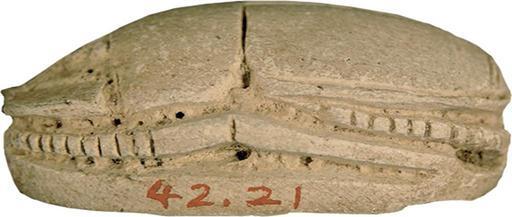 | Keywords: Egyptian - Scarab of Imeni - Walters 4221 - Left.jpg The ancient Egyptians believed that the dung beetle the Scarabaeus sacer was one of the manifestations of the sun god Representations of these beetles were used as amulets and for ritual or administrative purposes The bottom this scarab functions as a private name seal and contains the titles and name of a person called Imeni The text displays two not very clear defined columns of left reading hieroglyphic inscription without column dividers; an oval line frames the inscription The hieroglyphs of the bottom fill the whole text field but with some space in between; the layout is not very well balanced and some of the signs collide with the borderline The shape of the signs is simple and then has the typical Middle Kingdom form The highest point of the back is the partition between pronotum dorsal plate of the prothorax and elytron wing cases which is also defined by two side-notches and a deeply incised partition line A triple division line between the wing cases and a deep borderline which meet slightly asymmetrically at the rear are also visible The rectangular head is flanked by triangular eyes; the side plates are trapezoidal with curved outer edges and clypeus has a deep central base notch The proportions of the top are slightly unbalanced and the head section short in comparison to pronotum and elytron The raised extremities have natural form and vertical hatch lines on the fore- and hindlegs for the tibial teeth and pilosity hair ; the background between the legs is hollowed out The base has a symmetrical long-oval shape The scarab is longitudinally pierced was originally mounted or threaded and functioned as a private name seal and user Imeni individualized amulet which should guarantee constancy of individual existence and social status Imeni was a very popular name in the Middle Kingdom and Detlef Franke alone identified twenty-one different individuals with this name It is possible that it was the same Imeni who left an inscription with his name and the titles on the Sinai Peninsula in the year 42 of the reign of king Amenemhet III ca 1882 1798 BC Middle Kingdom light beige steatite cm 1 06 1 7 2 5 accession number 42 21 18240 Henry Walters Baltimore 1911 mode of acquisition unknown Walters Art Museum Henry Walters Acquired by Henry Walters 1911 Translation The seal-bearer of the King of Lower Egypt chief steward of the distribution of goods and orders Imeni Secret Signs Egyptian Writing The Walters Art Museum Baltimore 2003-2004 place of origin Egypt Walters Art Museum license Ancient Egyptian scarabs in the Walters Art Museum Media contributed by the Walters Art Museum needs category review |