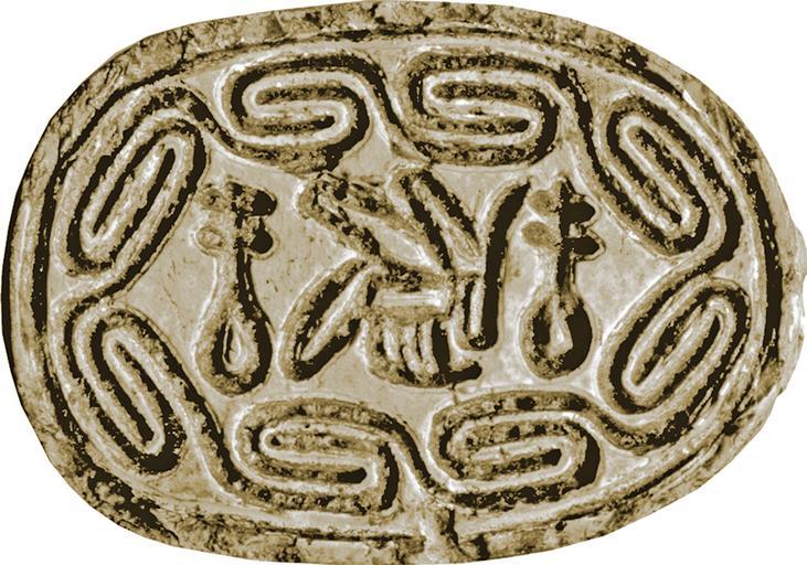 Keywords: Egyptian - Scarab with a Human Face - Walters 4227 - Bottom.jpg Walters Art Museum artwork en The ancient Egyptians believed that the dung beetle the Scarabaeus sacer was one of the manifestations of the sun god Representations of these beetles were used as amulets and for ritual or administrative purposes The head of this scarab is carved as a human face the rest of the body as a beetle The highest point of the back is the pronotum dorsal plate of the prothorax and two side-notches at shoulder height define the partition between pronotum and elytron wing cases The proportions of the top are almost balanced but the head section protrudes into the pronotum The raised slender extremities have natural form and diagonal hatch lines on the upper sides for the tibial teeth and pilosity hair ; the background between the legs is hollowed out The long-oval base is symmetrical and the drill-holes are framed The bottom design displays a line with three hieroglyphs the bee kingship in the center flanked by two nfr-signs perfection The hieroglyphs are enclosed by eight interlocked Z-shaped spiral scrolls two elongated horizontally on each length side two elongated diagonally with different orientations on the short sides; the arrangement is framed by an oval line The numeric arrangement of the spiral scrolls is 2+2+2+2 8 The layout of the bottom design is well organized and the line flow almost regular The scarab is longitudinally pierced was originally mounted or threaded and functioned as an amulet with kingship and good luck connotation It should ensure royal support bee good luck nfr and total renewal 8 spiral scrolls The combination of scarab body and human face may indicate the transformation process of the renewing sun god Erik Hornung and Elizabeth Staehelin comment to scarabs with human heads that they base on the Egyptian tendency of personification and anthropomorphism Nevertheless it seems obvious that this form represents a special aspect of the sun god Images of Khepri since the New Kingdom in the books of the underworld show either the pure scarab or a mummified human body with scarab instead of a head; there is also the combination of beetle body and ram head e g in the sixth part of the Book of Caverns but no one with human face The human head of scarab amulets could refer to different divine aspects such as Atum or Osiris but an interpretation as the face of the solar child seems the most likely one ca 1648 1539 BC Second Intermediate Hyksos Period light beige steatite cm 0 9 1 4 2 accession number 42 27 108 Henry Walters Baltimore 1911 mode of acquisition unknown Walters Art Museum Henry Walters Acquired by Henry Walters 1911 Translation The three hieroglyphic signs nfr bj tj and nfr have in this context most probably no syntactic relation but are equally meaningful Perfection - Kingship - Perfection Daily Magic in Ancient Egypt The Walters Art Museum Baltimore 2006-2007 place of origin Egypt Walters Art Museum license Ancient Egyptian scarabs in the Walters Art Museum Hyksos scarabs