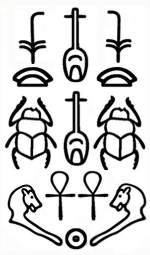 Keywords: Egyptian - Scarab with Script Signs - Walters 4212 - Impression.jpg This steatite scarab was originally glazed It has a flat underside with a vertically arranged bottom design with a combination of seven different script signs six of which appear twice The design of the scarab's back is simple with short aligned side-notches and well balanced proportions The piece is simply made and the workmanship is good This multifunctional amulet should provide royal and divine support good luck life renewal and protection The double presence of the six signs refers to the creation and the single sun disc to the creator The amulet should protect and support its owner in all different situations The piece was originally mounted or threaded Scarabs displaying hieroglyphic sign arrangements without syntactical context are typical for the late Middle Kingdom and the Hyksos Period ca 1794 1539 BC late Middle Kingdom-Second Intermediate; MB IIB light beige steatite cm 0 8 1 1 1 7 accession number 42 12 28134 Henry Walters Baltimore 1911 mode of acquisition unknown Walters Art Museum Henry Walters Acquired by Henry Walters 1911 Translation The combination has seven different hieroglyphic signs of which six appear twice only the sun disc is not repeated The terms are King - appearance perfection/good luck come into being beginning - life Re life - beginning place of origin Egypt Walters Art Museum license 2D Ancient Egyptian scarabs in the Walters Art Museum Hieroglyphs on scarabs |