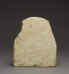 Keywords: Egyptian - Sculptor Model for a Royal Bust - Walters 2254 - Back.jpg A limestone model bust of a royal male wearing the nemes headdress with a uraeus The uraeus serpent has been broken away As was typical for the period the uraeus had two coils one to each side and the tail extended back over the top of the rounded nemes Beneath the edge of the band of the nemes the natural hairline of the figure may be seen The eyes are naturally outlined and the brow delicately follows the contour of the eye The pupils and irises of the eyes are picked out in black paint The surface of the piece has been scratched and chipped in several places The face is fleshy and rather flat in profile The lips are pursed and smiling The back sides and base are flat planes and there are grid squares etched into the back and sides Where the lappets touch the shoulder they are creased in an unnaturally sharp way The lappets are flat with a curved outer edge and strictly vertical inner edge ca 200 150 BC Greco-Roman limestone cm 18 8 16 1 9 5 accession number 22 54 3028 Henry Walters city Baltimore Walters Art Museum Henry Walters Acquired by Henry Walters 1920 place of origin Egypt Walters Art Museum license Ancient Egyptian reliefs in the Walters Art Museum Unknown pharaohs Works of Greco-Roman Egypt Media contributed by the Walters Art Museum needs category review