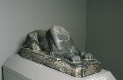 | Keywords: Egyptian - Sphinx of King Psamtik II - Walters 22104 - Three Quarter.jpg Sphinxes served as temple figures Combining the muscular body of a reclining lion with the head of a royal human the sphinx was a powerful symbol of the ancient Egyptian concept of divine kingship Although now headless this sphinx retains part of its striped nemes head cloth worn only by Egypt's monarchs and meant to represent a hooded cobra a royal symbol Originally created for another king the sphinx's first inscription was replaced by one naming King Psamtik II between 664 589 BC Late Period greywacke cm 39 94 28 5 accession number 22 104 33156 Dikran Kelekian New York and Paris Henry Walters city Baltimore Walters Art Museum Henry Walters Acquired by Henry Walters 1909 place of origin Thebes in present-day Egypt Walters Art Museum license Ancient Egyptian statues in the Walters Art Museum Psammetichus II Statues of Egyptian sphinxes Statues of the 26th dynasty of Egypt Ancient Egyptian art made from greywacke |