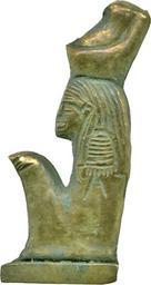 | Keywords: Egyptian - Squatting Representation of Mut - Walters 571486.jpg An amulet made of pale sheet gold representing a cloaked figure seated with knees drawn up The figure wears the double crown of Upper and Lower Egypt over a long wig A short sleeve is shown between the flaps of the wig The flat piece appears to have been worked in a mold with the details of the face hands and hair later chased The base to which the figure is attached is solid gold A loop for suspension is attached behind the crown This probably existed during the 30th Dynasty-Ptolemaic Period 380-30 BC Late Period-Greco-Roman gold H 11/16 x W 3/16 1 7 x 0 55 x 0 01 cm accession number 57 1486 7803 Henry Walters Baltimore date and mode of acquisition unknown Walters Art Museum Henry Walters Acquired by Henry Walters Jewelry - Ancient to Modern The Walters Art Gallery Baltimore 1979-1980 place of origin Egypt Walters Art Museum license Ancient Egyptian statuettes in the Walters Art Museum Ancient Egyptian jewellery in the Walters Art Museum Mut amulet |